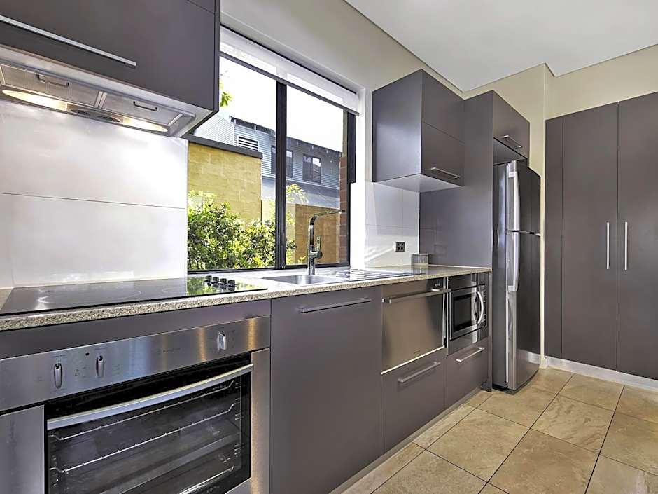 This modern two bedroom self-contained apartment features 1 king and 2 single beds, sofa bed, 2 bathrooms (1 with bathtub), an LCD TV + DVD, 2nd TV in master, living/dining , kitchen & laundry facilities. Sleeps up to 6 guests. Please note some rooms have accessible ensuite.
